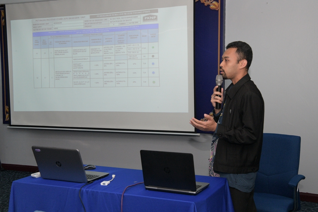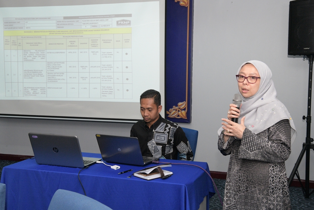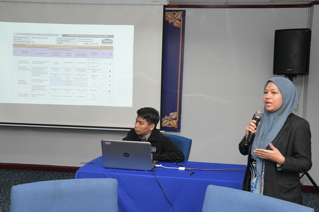 Sesi Pembentangan Prestasi KPI Kumpulan PKNP bagi tahun 2018 dan Sesi Pembentangan Prestasi KPI 2018 & Sasaran KPI 2019 diadakan pada 17 Januari 2019 di Dewan Seminar EDC, Tingkat 3 Kompleks Teruntum, Kuantan. Sesi Pembentangan ini dihadiri oleh pihak pengurusan serta pegawai A bahagian dan unit masing-masing.
