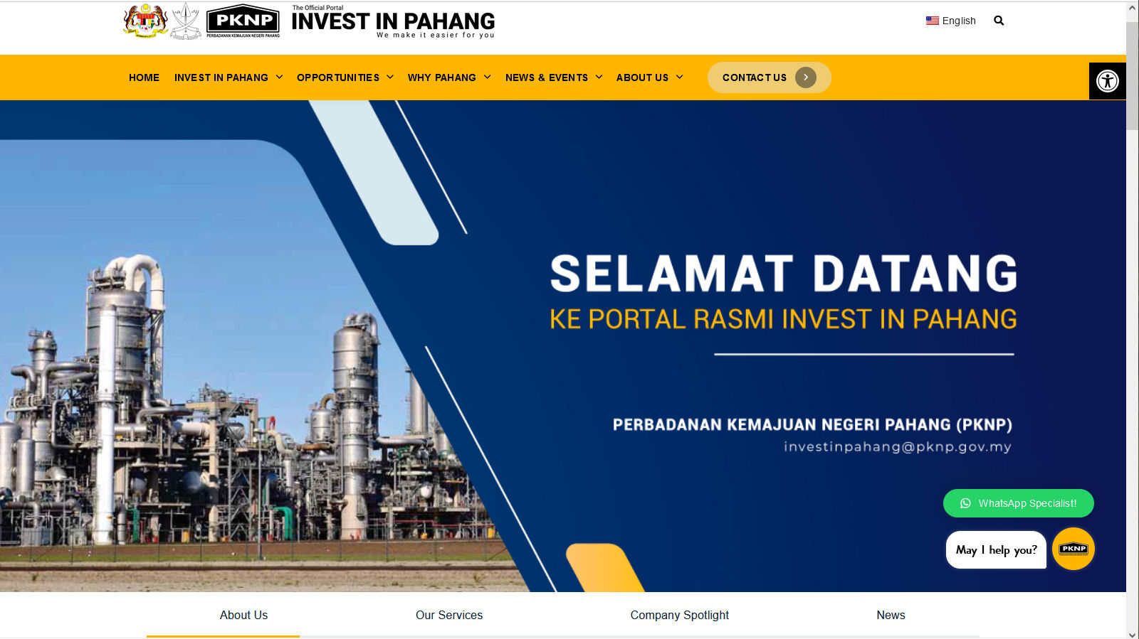 PKNP berperanan sebagai Agensi Perkhidmatan Setempat (OSA) dalam sektor perkilangan Negeri Pahang dan telah diwujudkan semenjak tahun 1995. Tujuan penubuhan OSA ini adalah untuk mewujudkan dan meningkatkan iklim pelaburan yang menarik kepada bakal pelabur dan pelabur sedia ada untuk mendirikan kilang di kawasan-kawasan perindustrian yang dibangunkan oleh PKNP.